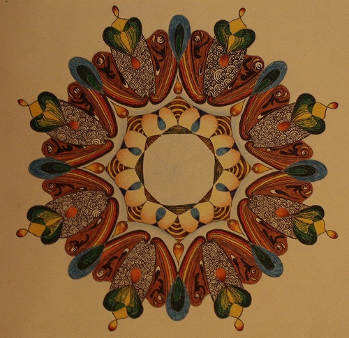 In permanenta se intampla in interiorul nostru cate ceva: impresiile, gandurile, senzatiile, toate ajung intr-o masura mai mare sau mai mica in constient. Cand incepi sa folosesti o tehnica artistica sa apuci aceste realitati interioare si sa le aduci la suprafata, ele se metamorfozeaza in diverse si variate forme....aceste forme se transpun in mandala momentului.