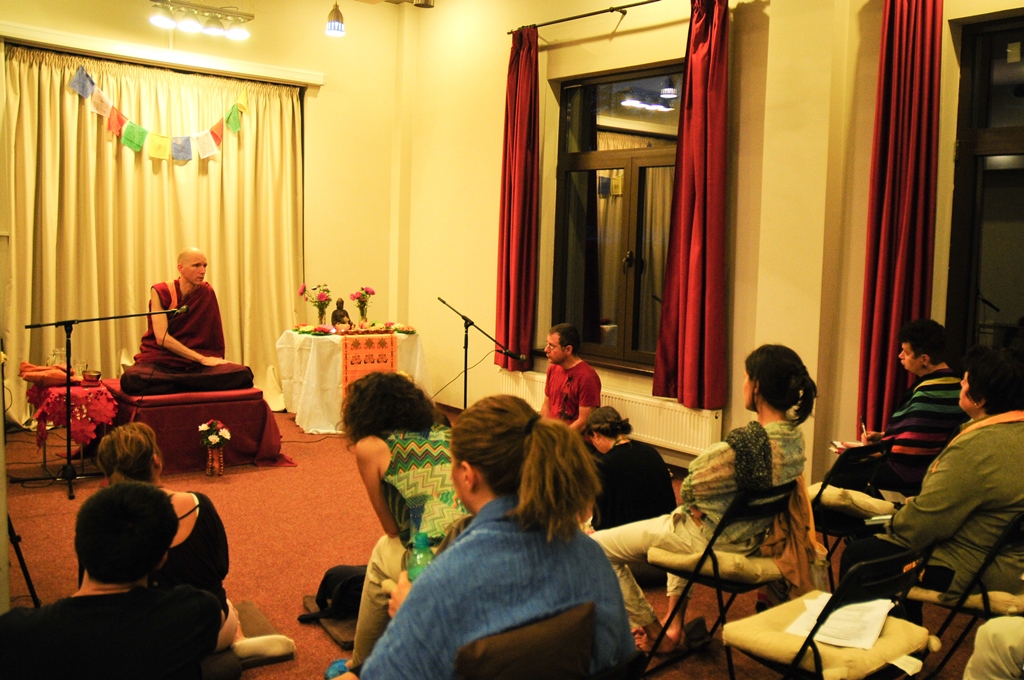 Venerabilul Jangchub Phuntsok  este pentru  a treia oara in Romania si expunerile precedente au cuprins pe langa prezentarea textului fundamental, indrumari clare si despre practica meditatiei.