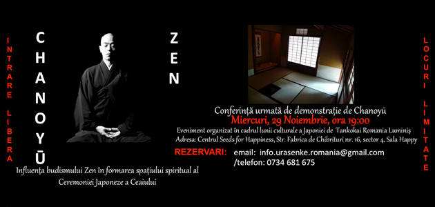 Dacă vă interesează, sunteți așteptați cu plăcere pentru a discuta despre aceste lucruri la această prelegere organizată de Urasenke Tankokai Romania Luminis, urmată de servit de ceai verde și dulciuri japoneze.